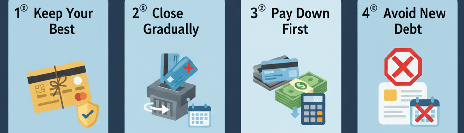 3️⃣ Pay down balances before closing accounts.
